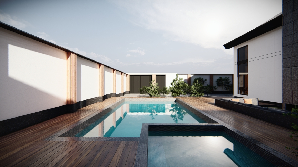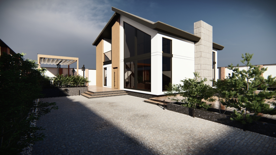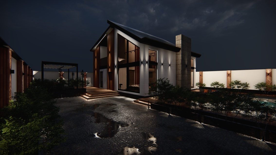 2. طراحی و معماری: سبک طراحی این ویلا مدرن است و یکی از ویژگیهای برجسته آن تقویت خطوط موازی است. از آنجا که این پروژه یک بازسازی بود و سازه قبلاً ساخته شده بود، ما در مرحله سفتکاری وارد پروژه شدیم و تغییرات لازم را اعمال کردیم. مهمترین تغییر اضافه کردن یک بخش حذف شده از قسمت پشتی ویلا بود و همچنین طراحی پنجرهها به گونهای انجام شد که با خطوط موازی سقف هماهنگی داشته باشند.